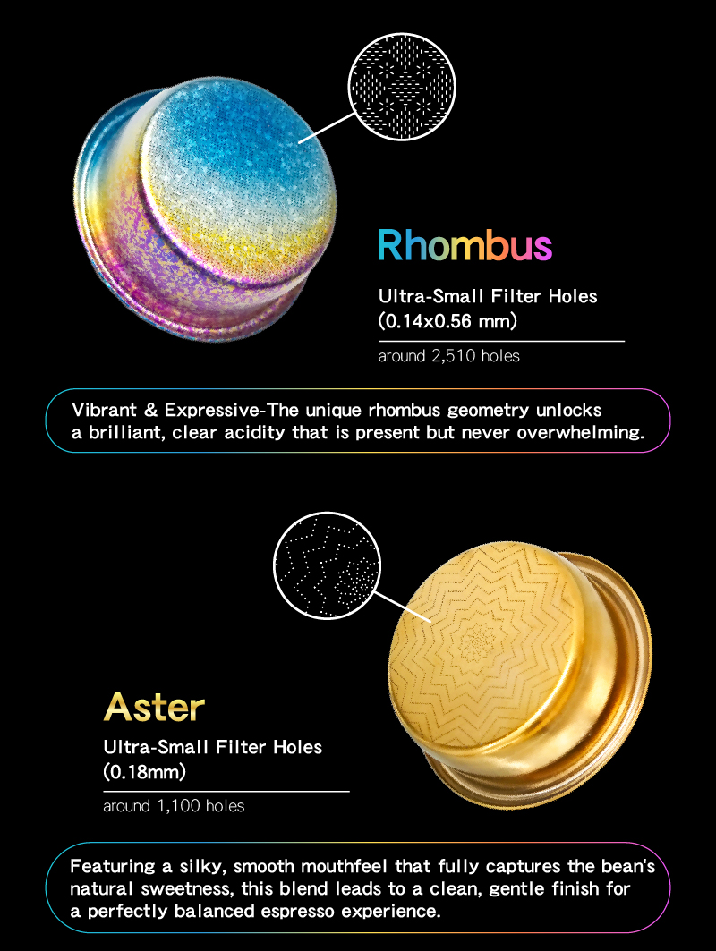 Meet our new hole patterns and espresso measuring cup.